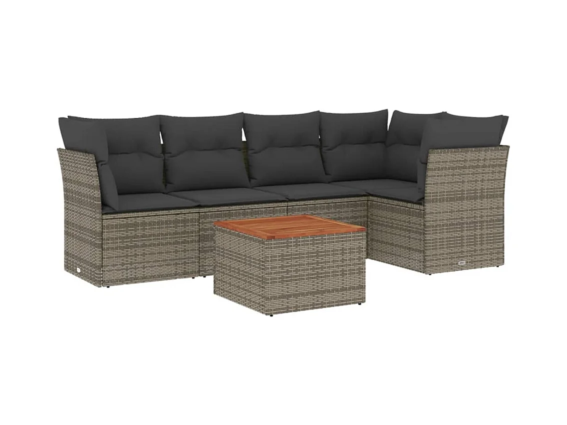 6 pcs conjunto sofás de jardim com almofadões vime cinzento PT925833