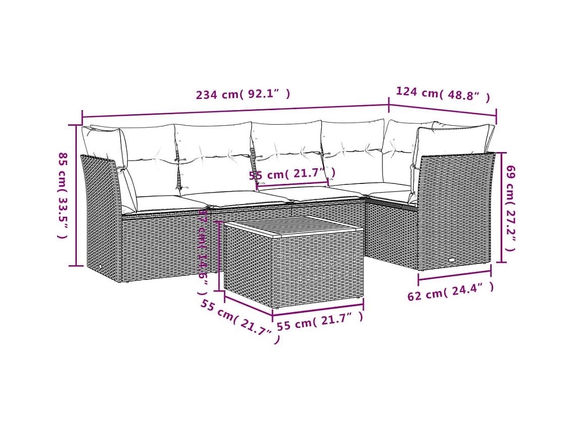 6 pcs conjunto sofás de jardim com almofadões vime cinzento PT924846