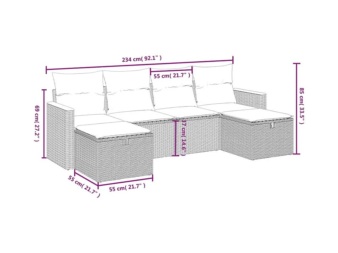 6 pcs conjunto sofás de jardim com almofadões vime cinzento PT937513