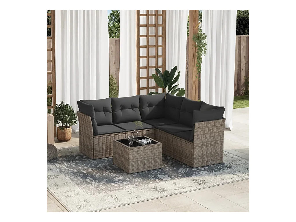 6 pcs conjunto sofás de jardim com almofadões vime cinzento PT645012