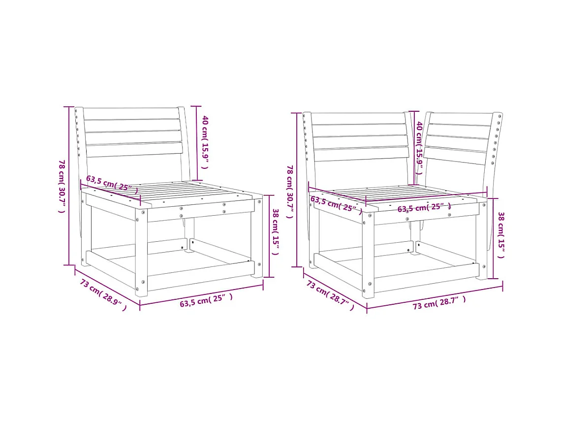 5 pcs conjunto de sofás de jardim com almofadões pinho maciço