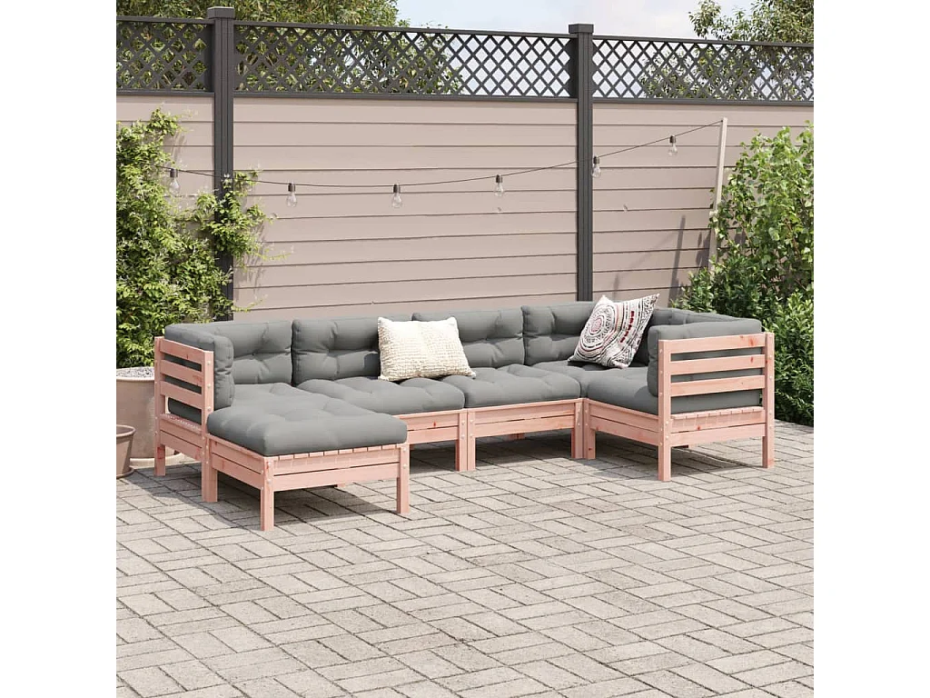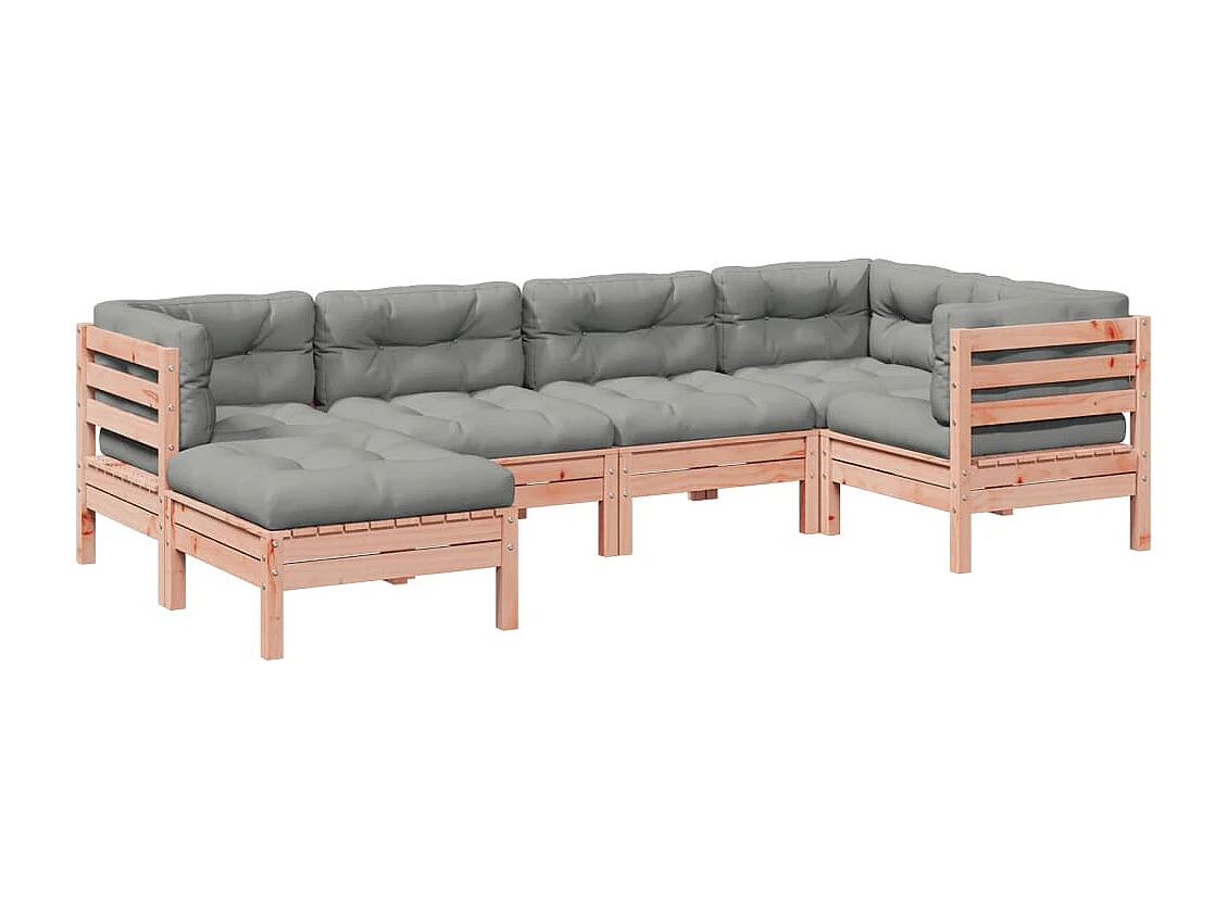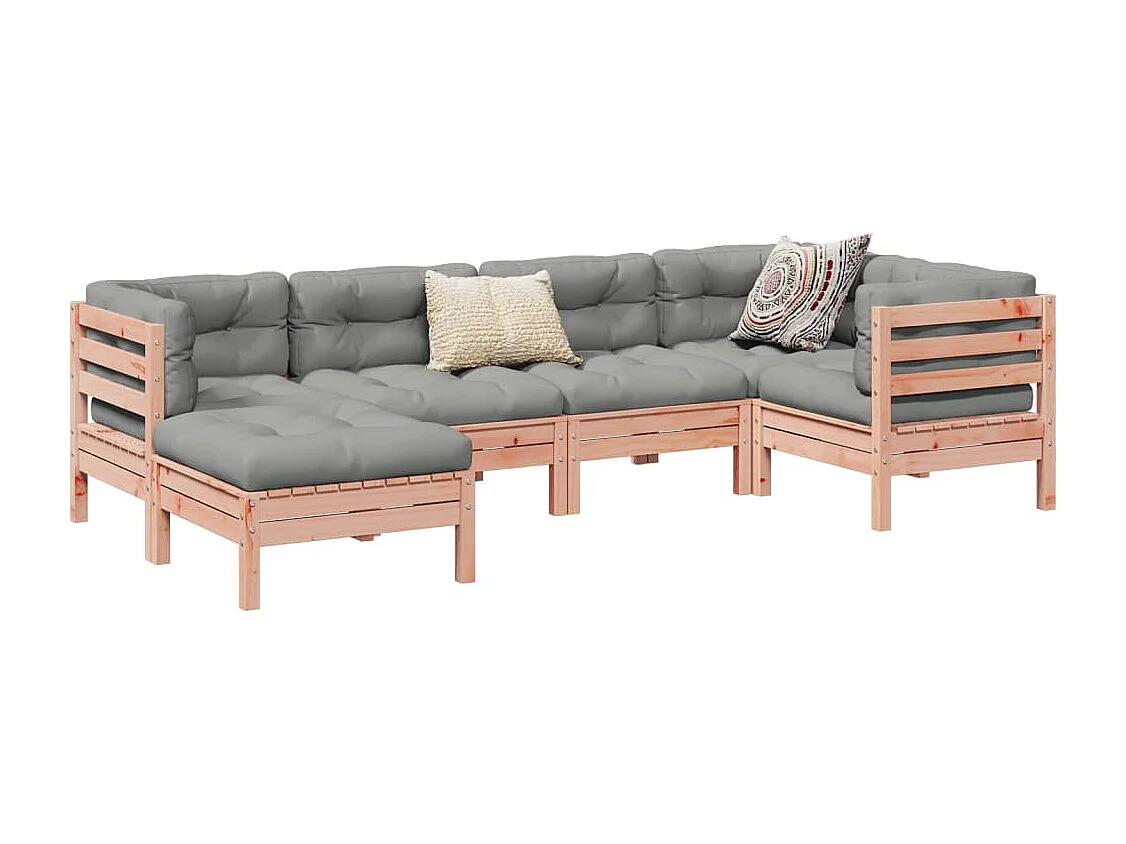 6 peças conj. sofás jardim c/ almofadões madeira abeto-de-douglas