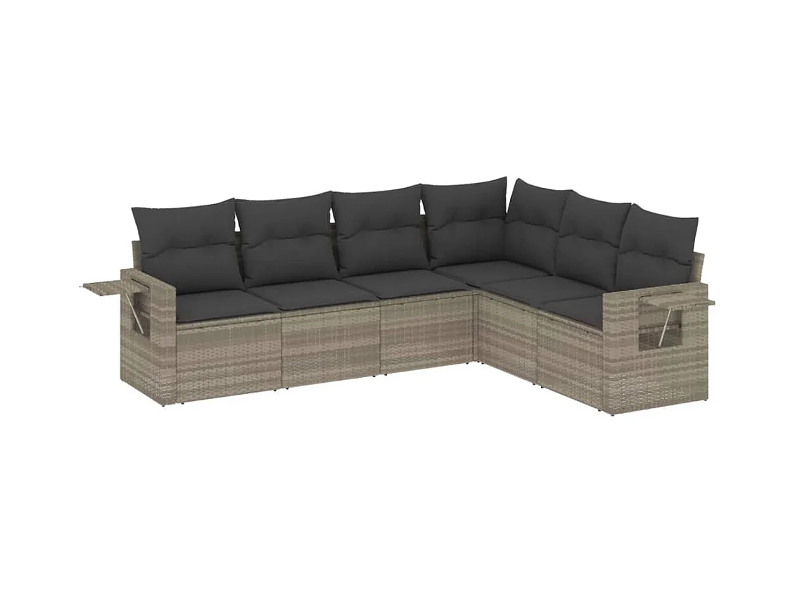 7 peças conjunto sofás para jardim com almofadões vime PE cinzento
