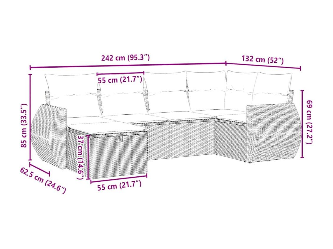 6 peças conj. sofás jardim com almofadões vime PE cinzento-claro
