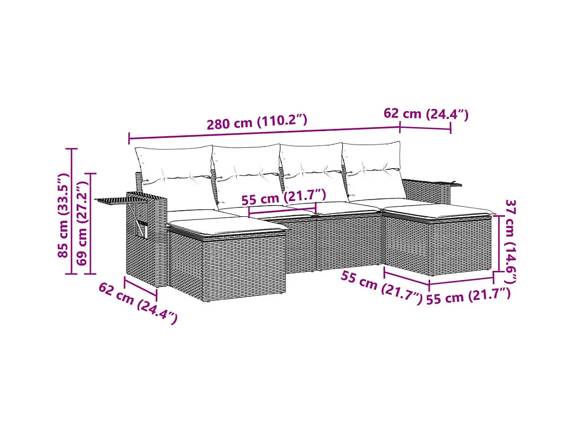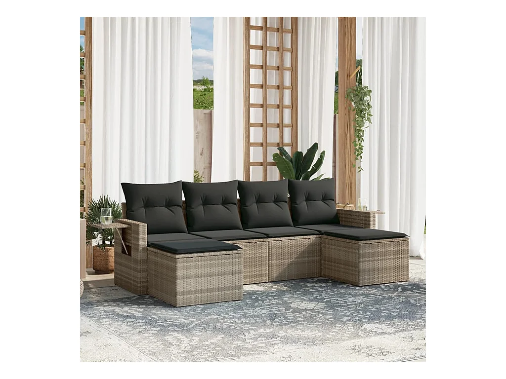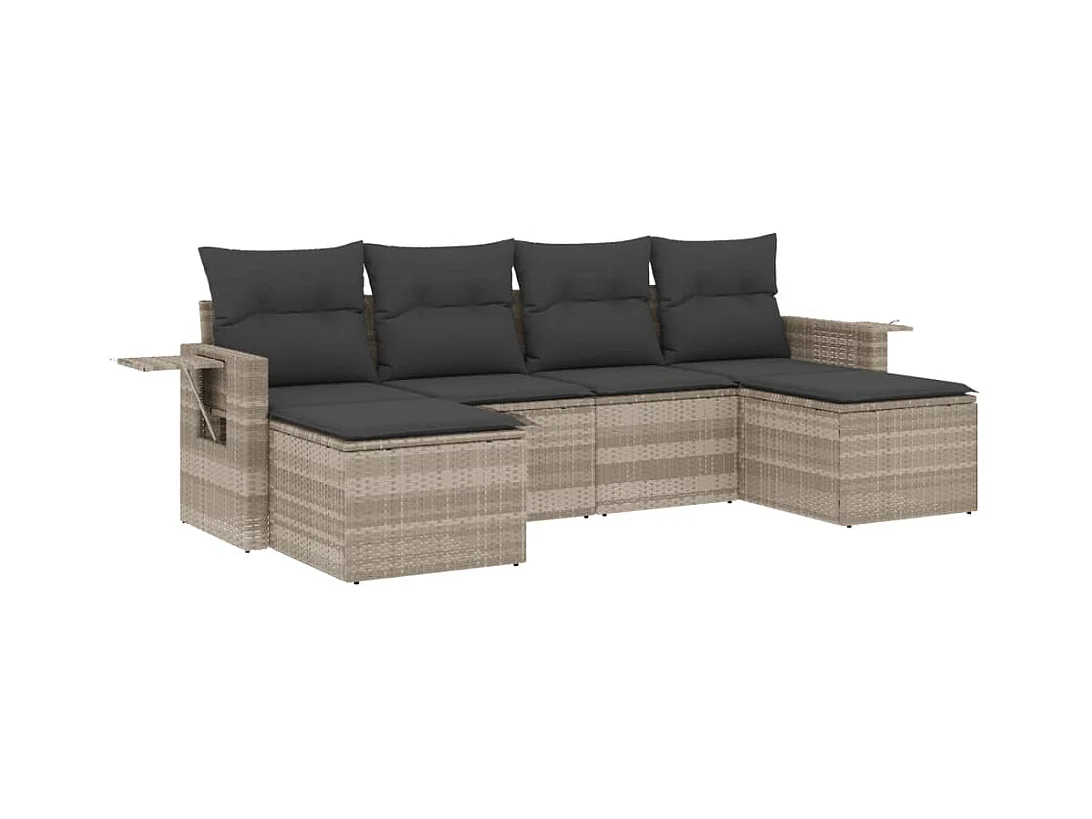 6 peças conj. sofás jardim com almofadões vime PE cinzento-claro