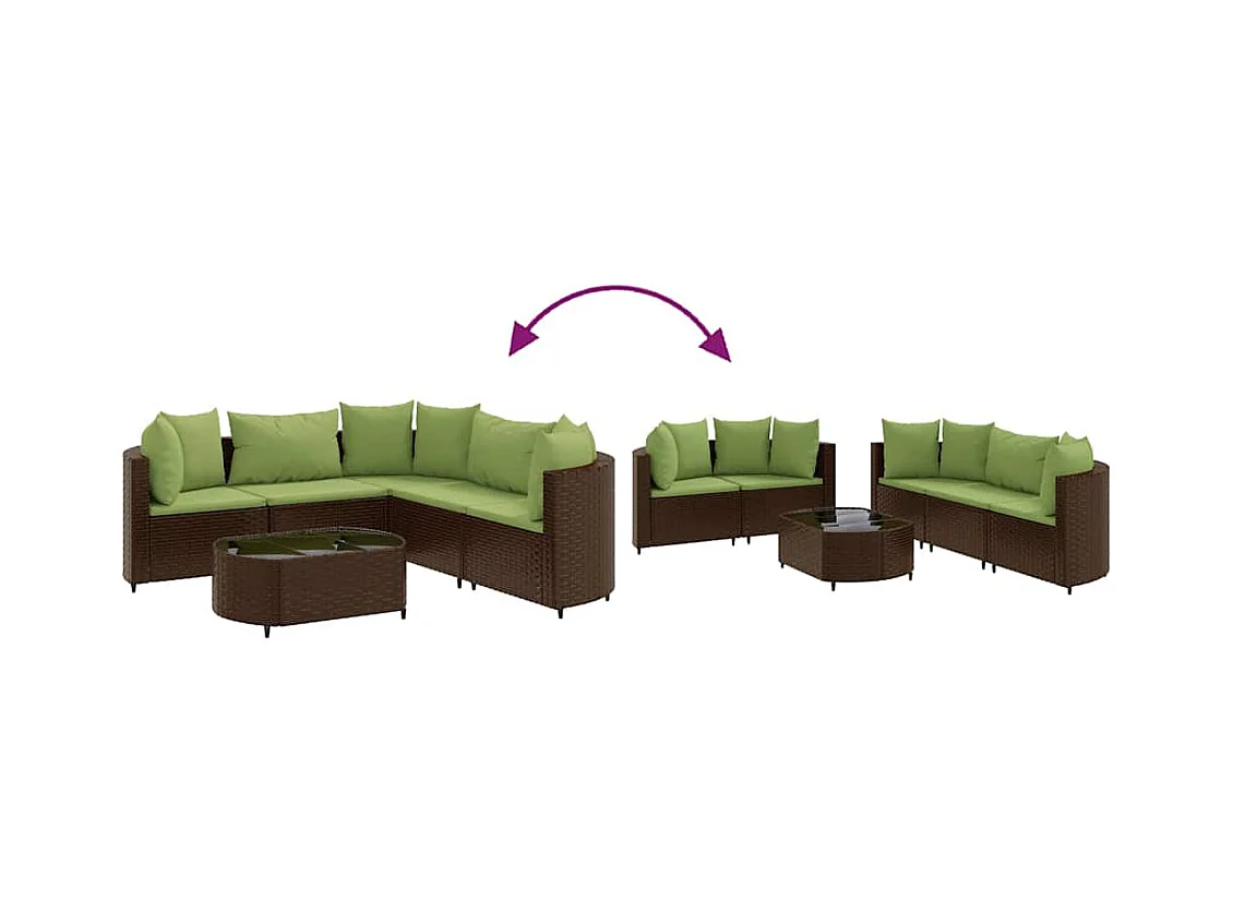 6 peças conjunto de sofás jardim com almofadões vime PE castanho