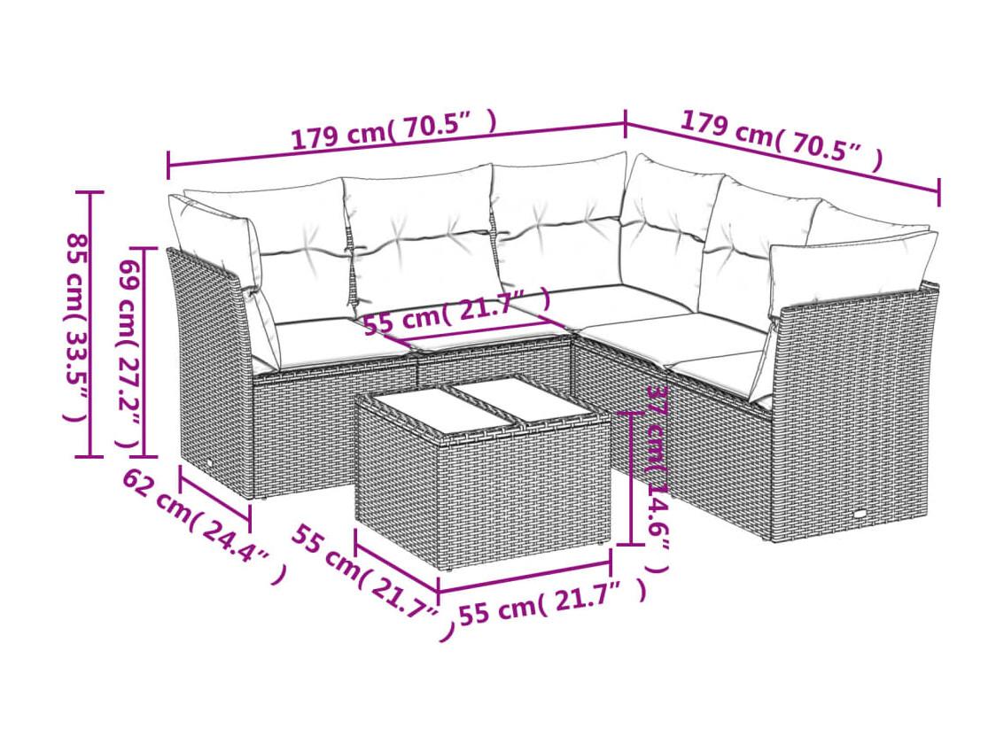 6 peças conjunto de sofás jardim com almofadões vime PE castanho
