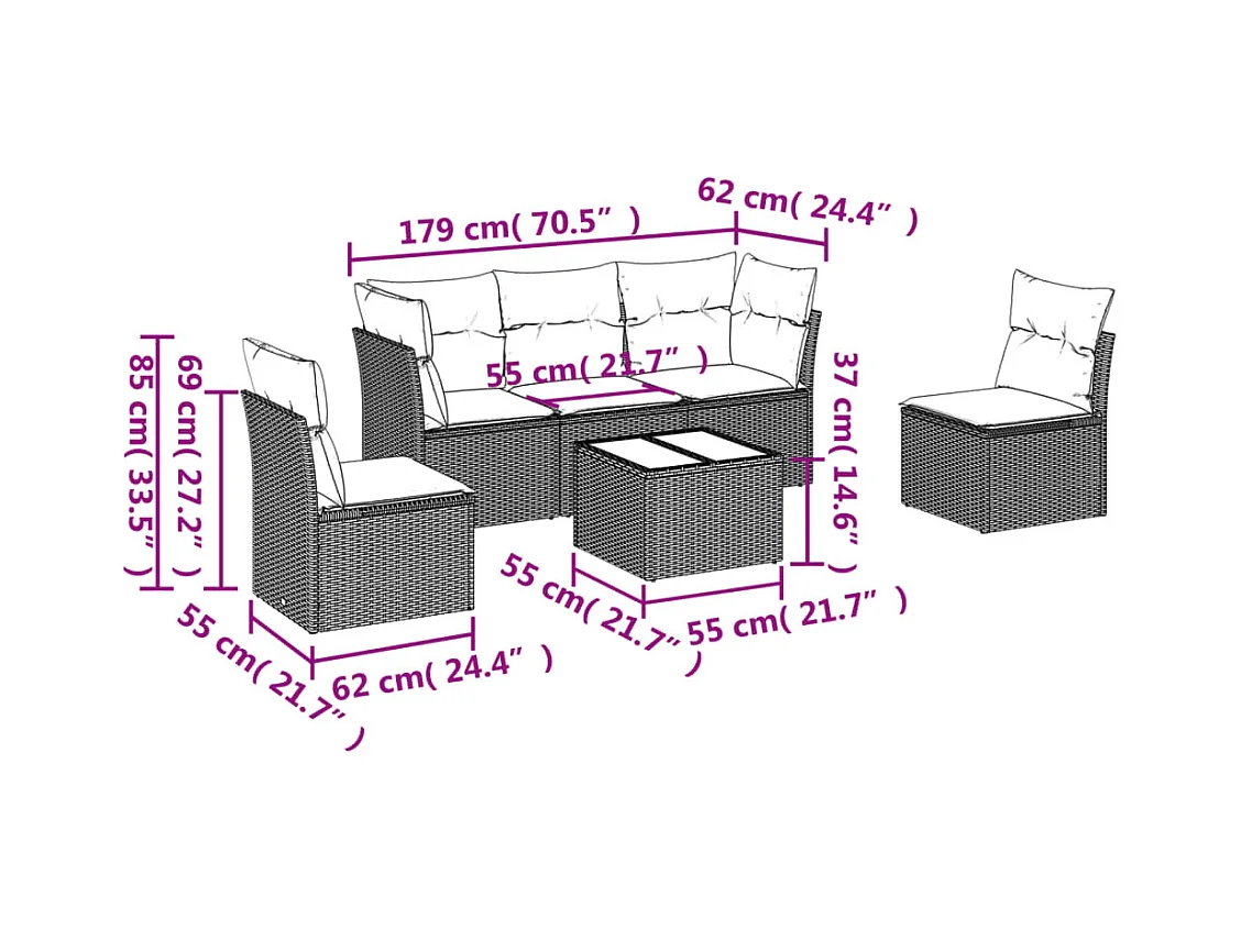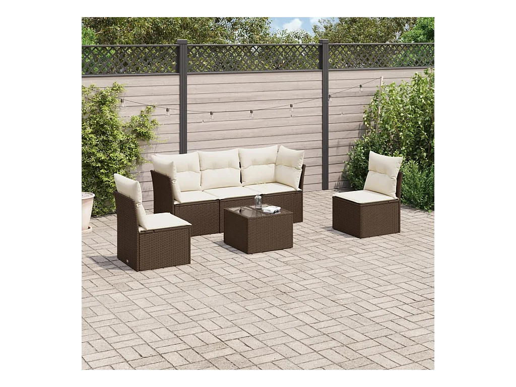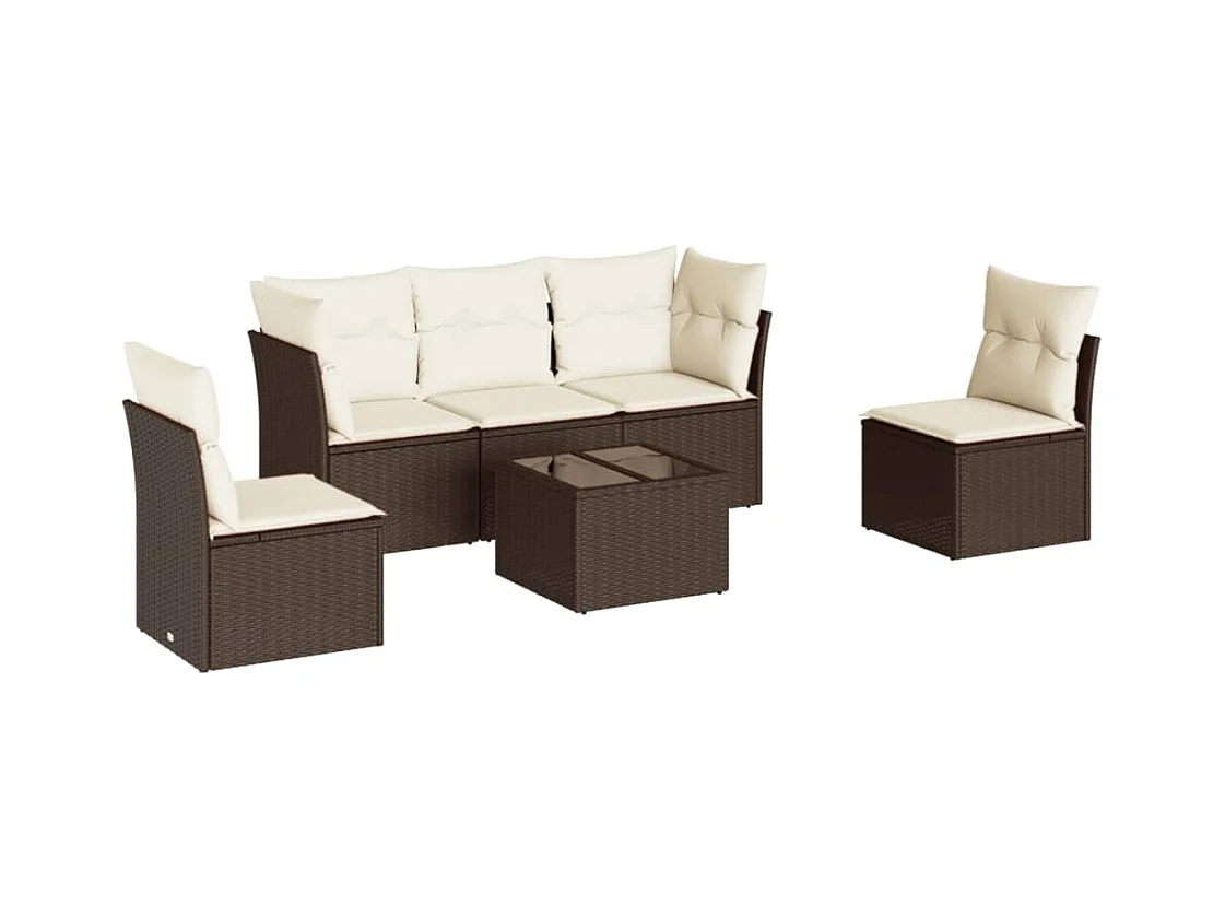 6 peças conjunto de sofás jardim com almofadões vime PE castanho