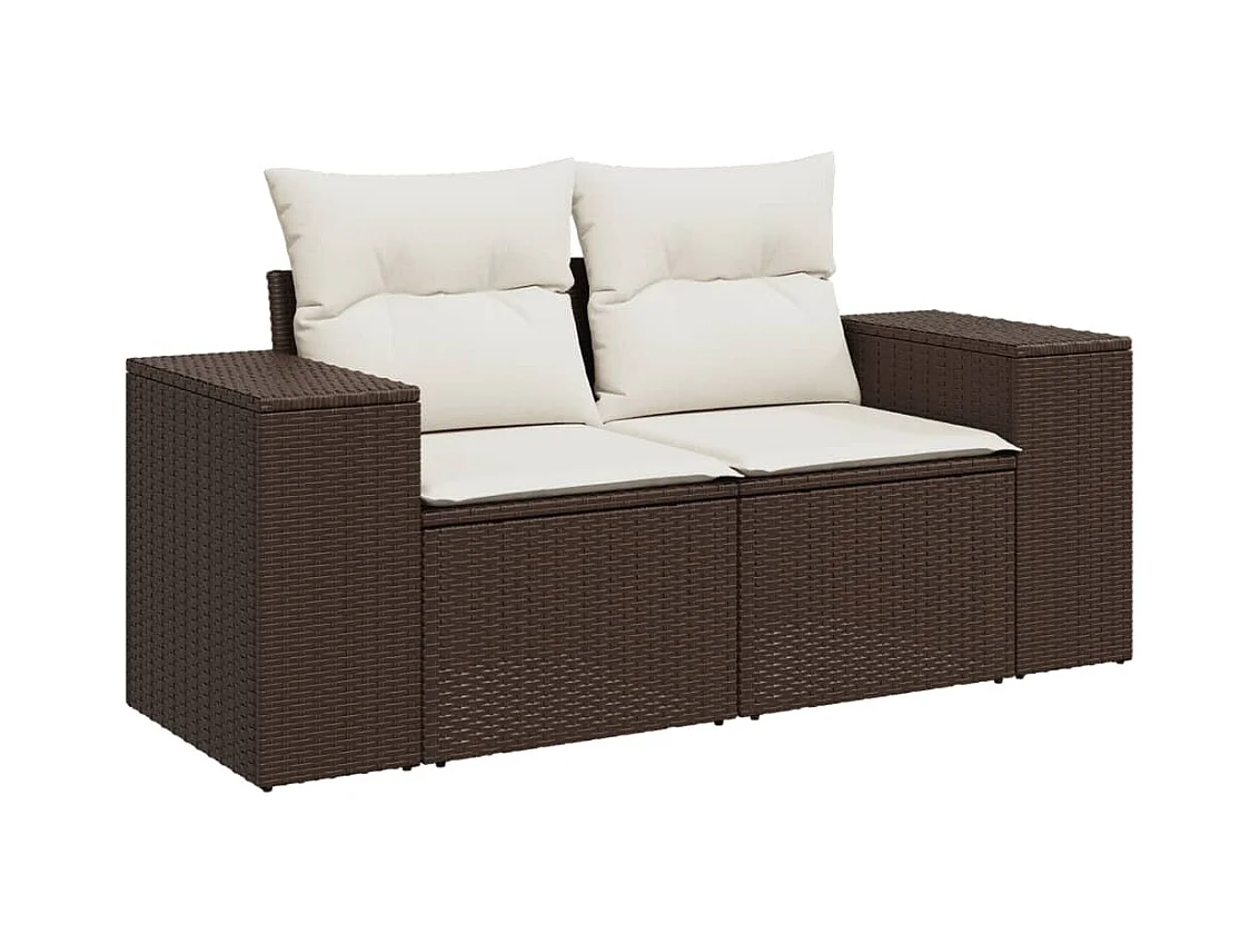 7 peças conjunto de sofás jardim com almofadões vime PE castanho