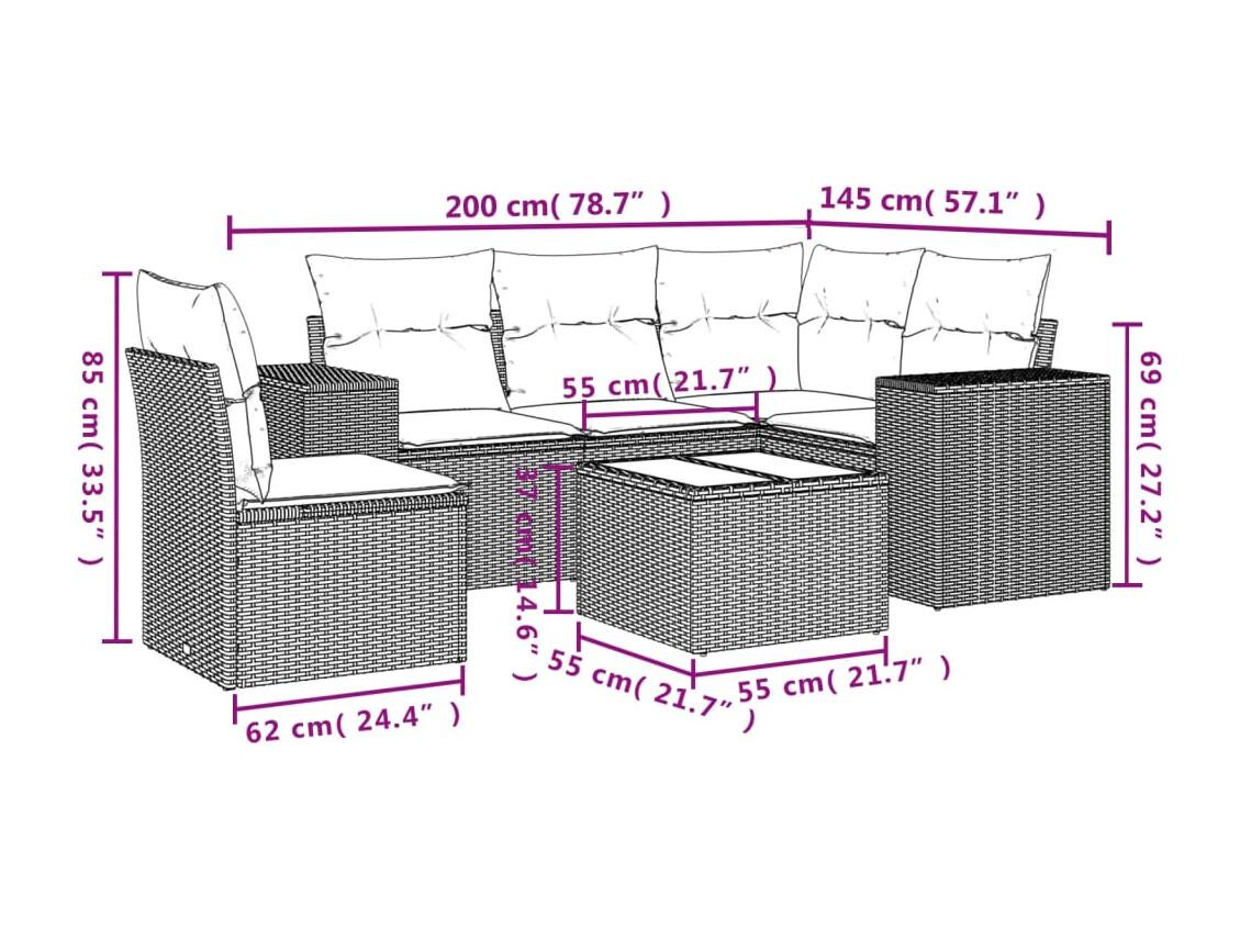 6 peças conjunto de sofás jardim com almofadões vime PE castanho
