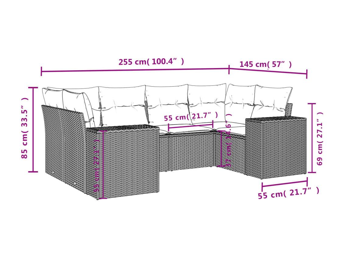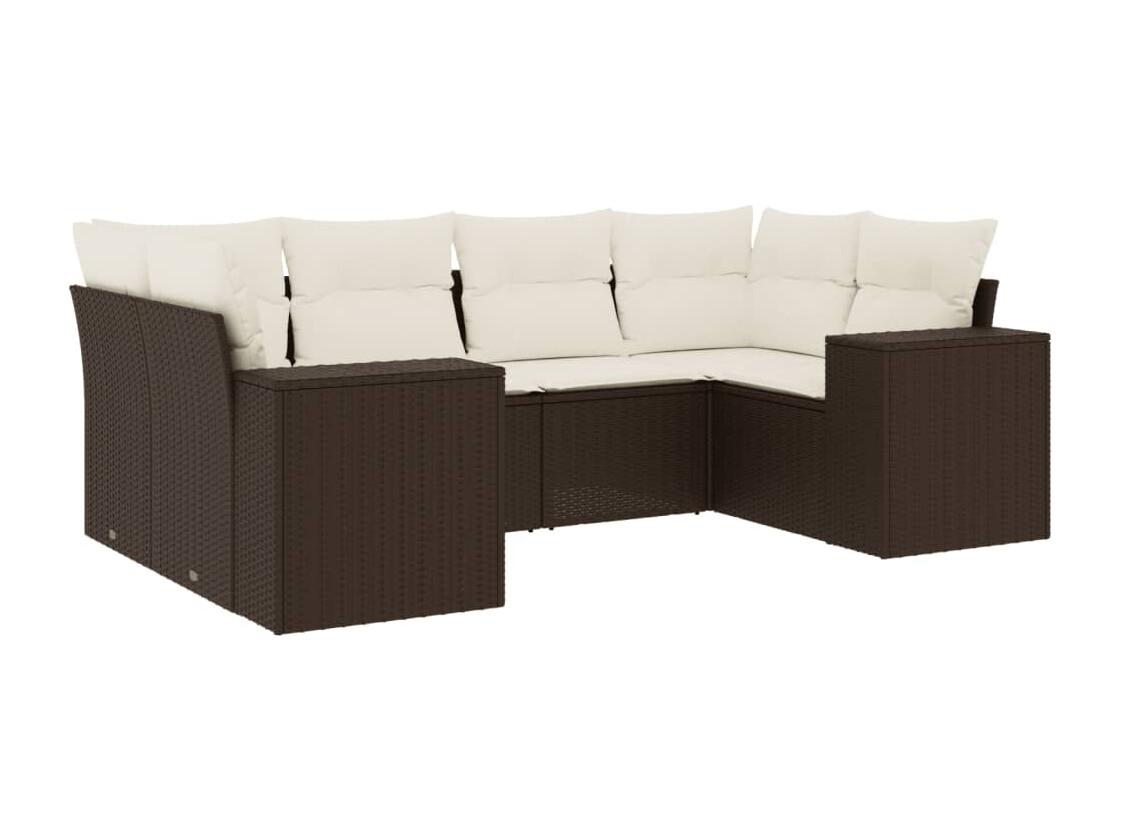 6 peças conjunto de sofás jardim com almofadões vime PE castanho