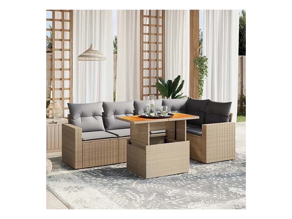 6 peças conjunto de sofás para jardim com almofadões vime PE bege