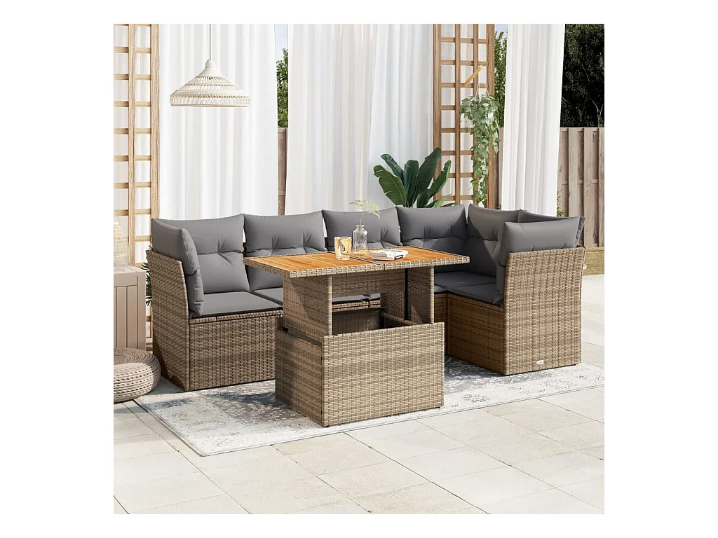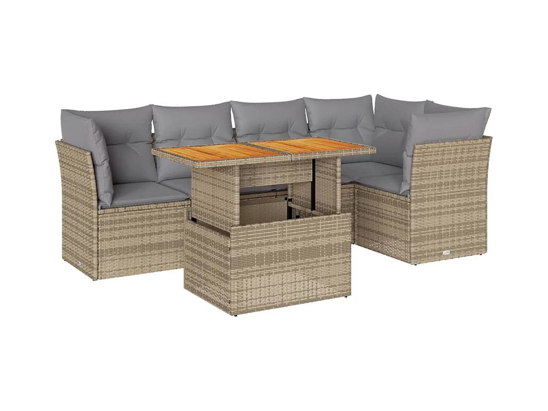 6 peças conjunto sofás jardim com almofadões vime PE/acácia bege