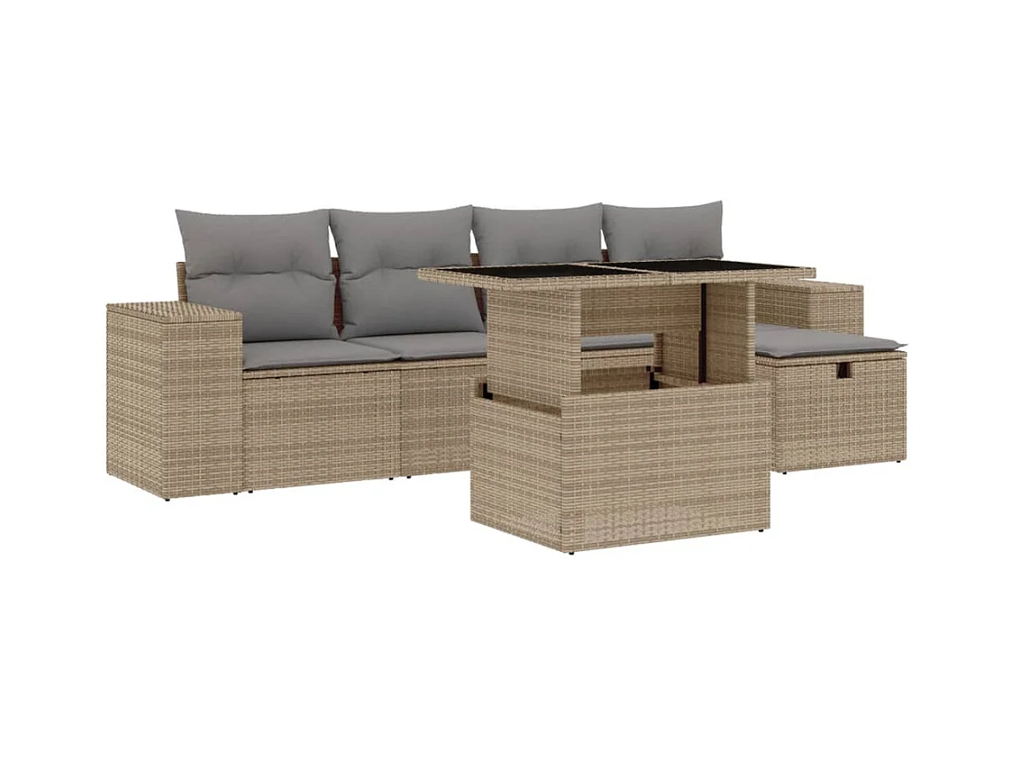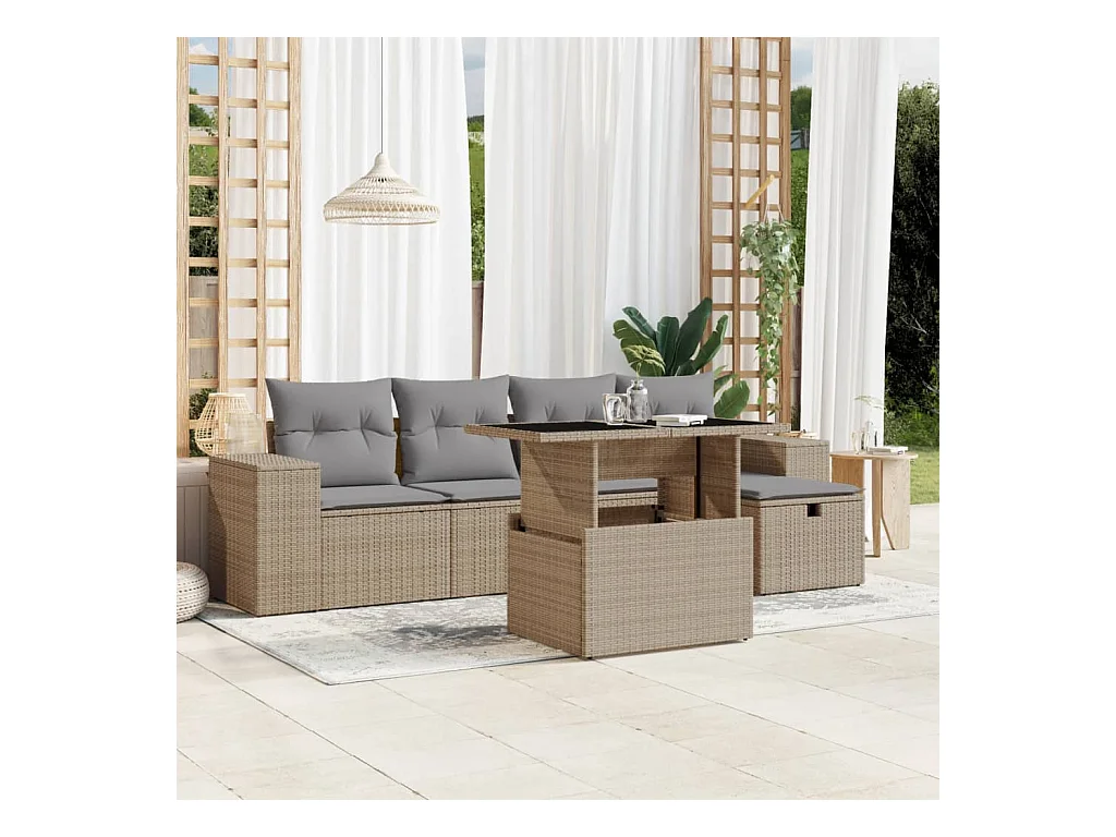 6 peças conjunto de sofás para jardim com almofadões vime PE bege