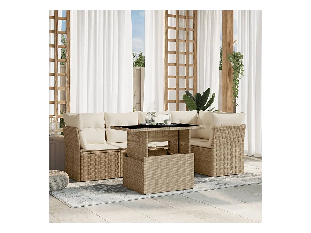6 peças conjunto de sofás para jardim com almofadões vime PE bege