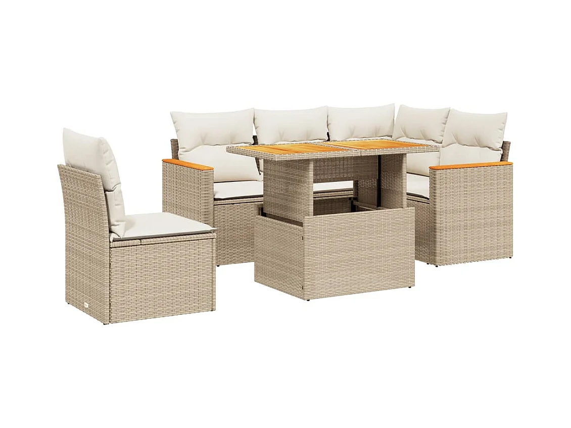 6 peças conjunto de sofás para jardim com almofadões vime PE bege