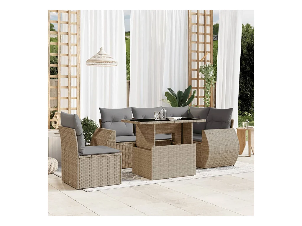 6 peças conjunto de sofás para jardim com almofadões vime PE bege