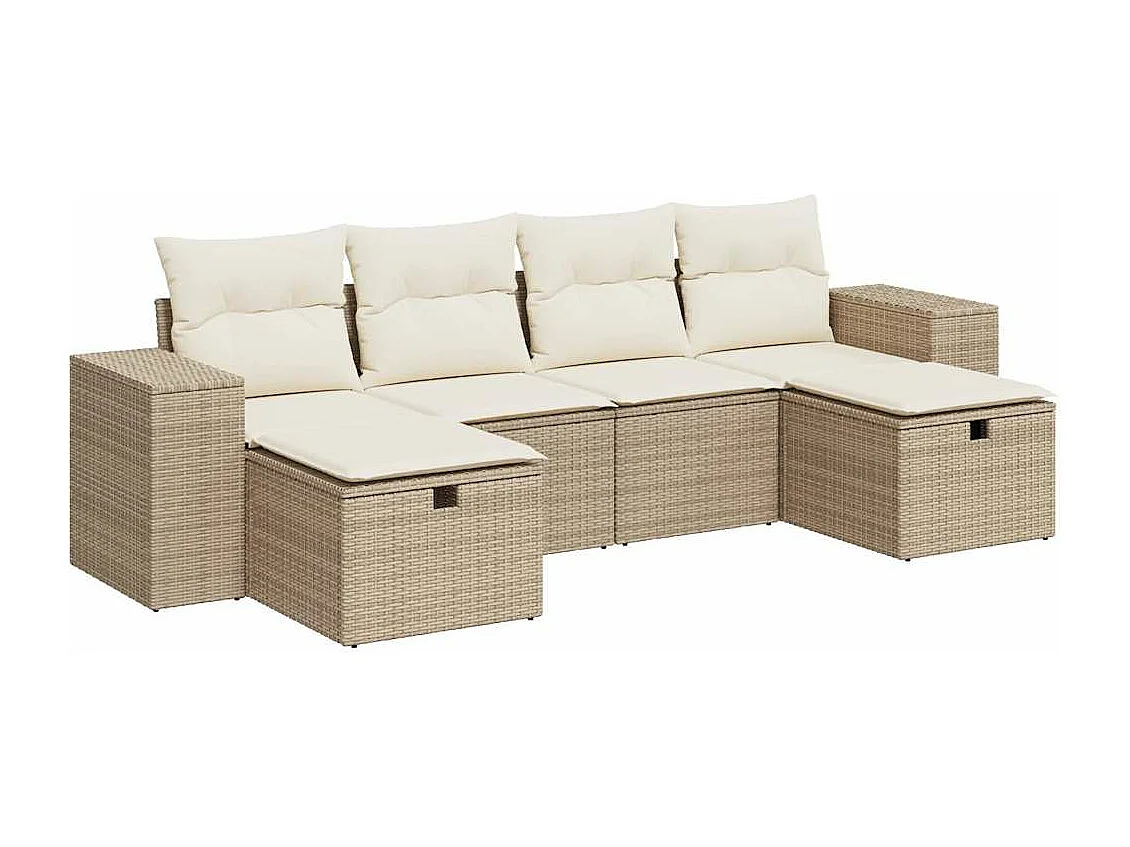 6 peças conjunto de sofás para jardim com almofadões vime PE bege