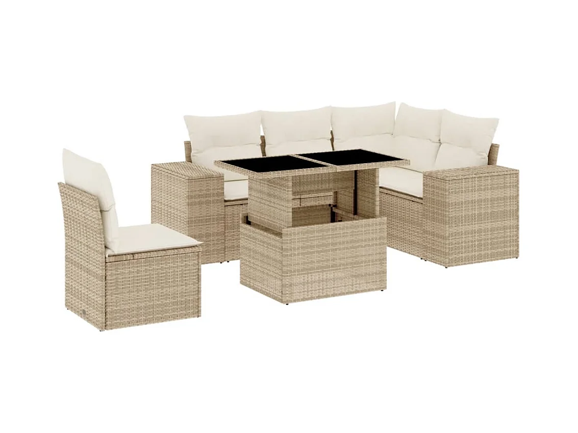 6 peças conjunto de sofás para jardim com almofadões vime PE bege