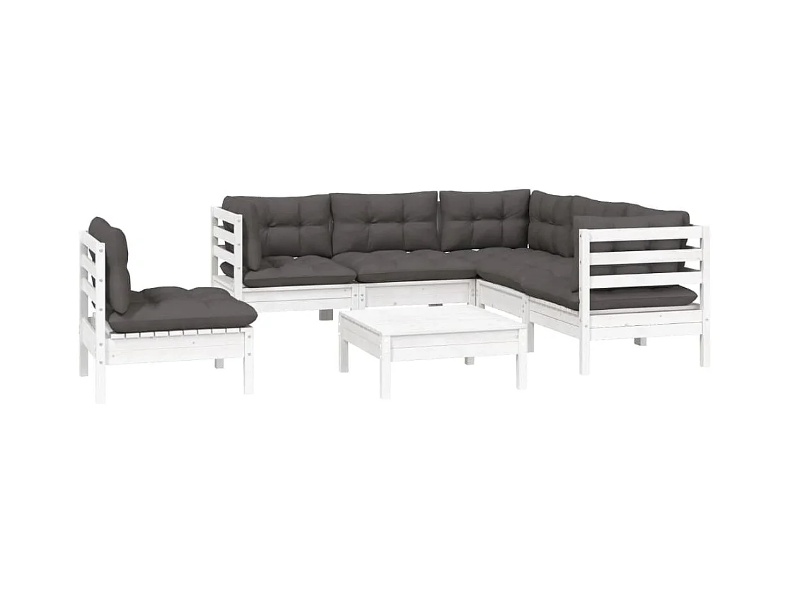 6 peças conjunto lounge de jardim c/ almofadões pinho branco