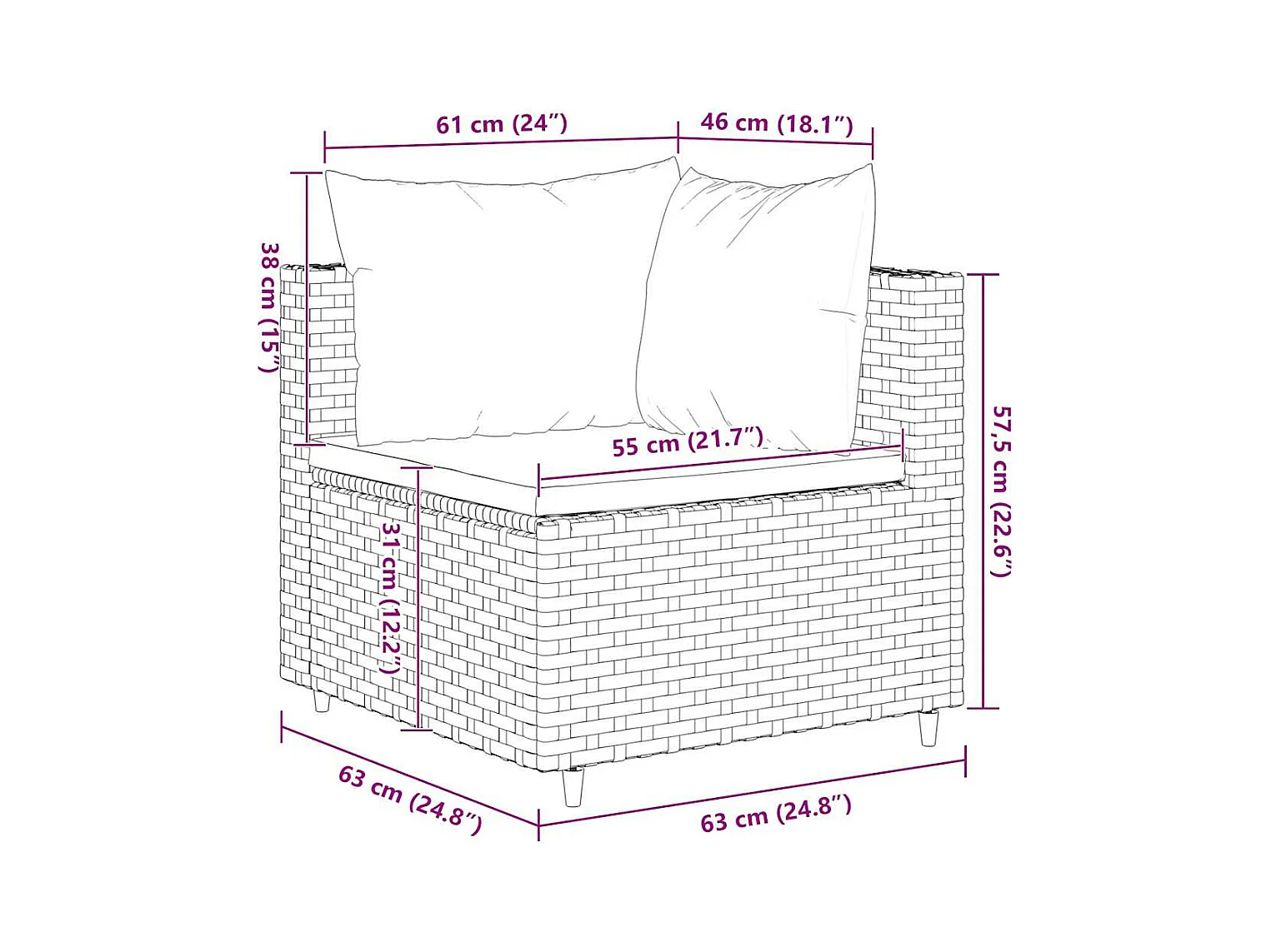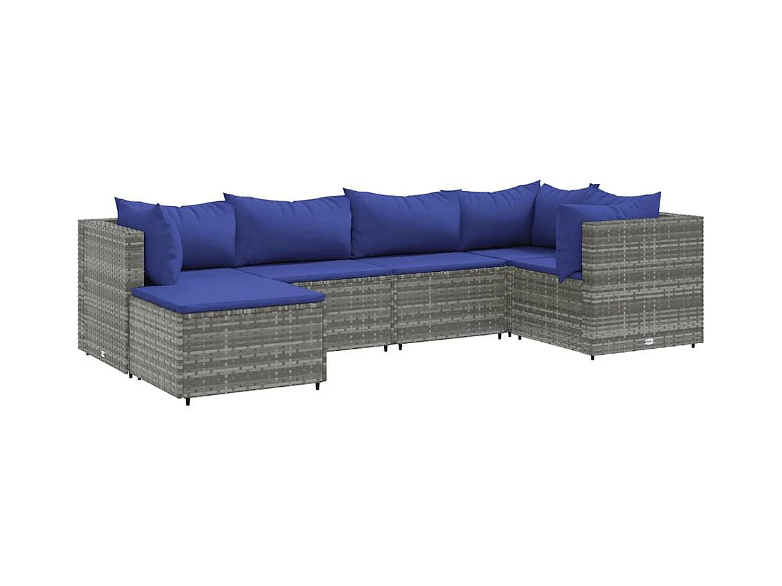 6 peças conjunto lounge de jardim com almofadões vime PE cinzento