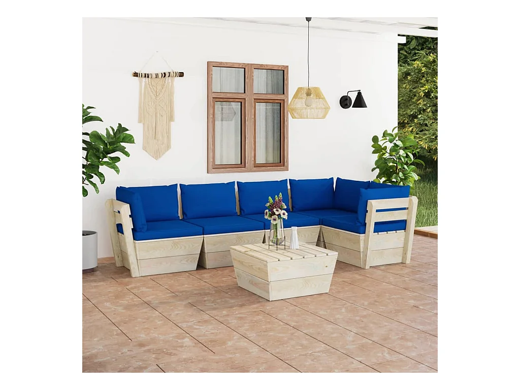 6 peças conjunto lounge de paletes + almofadões madeira de abeto