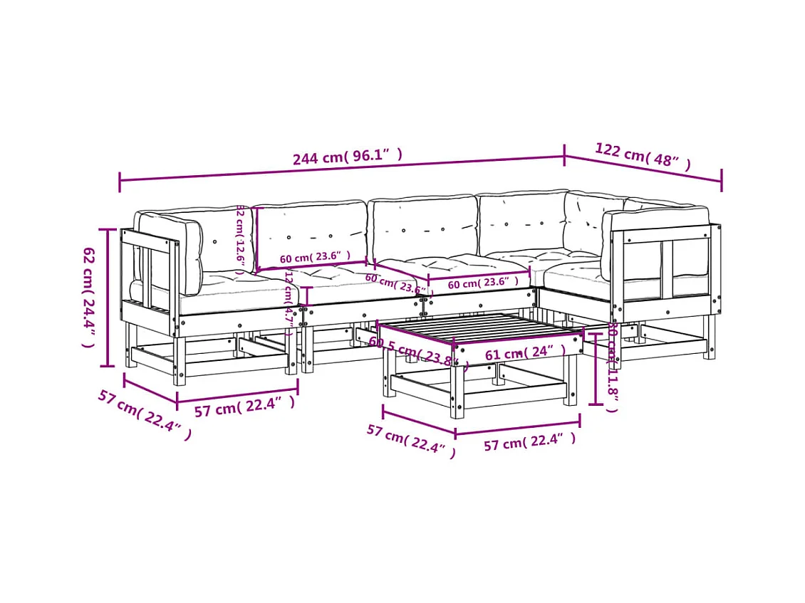 5 pcs conj. lounge jardim com almofadões madeira douglas maciça PT93012