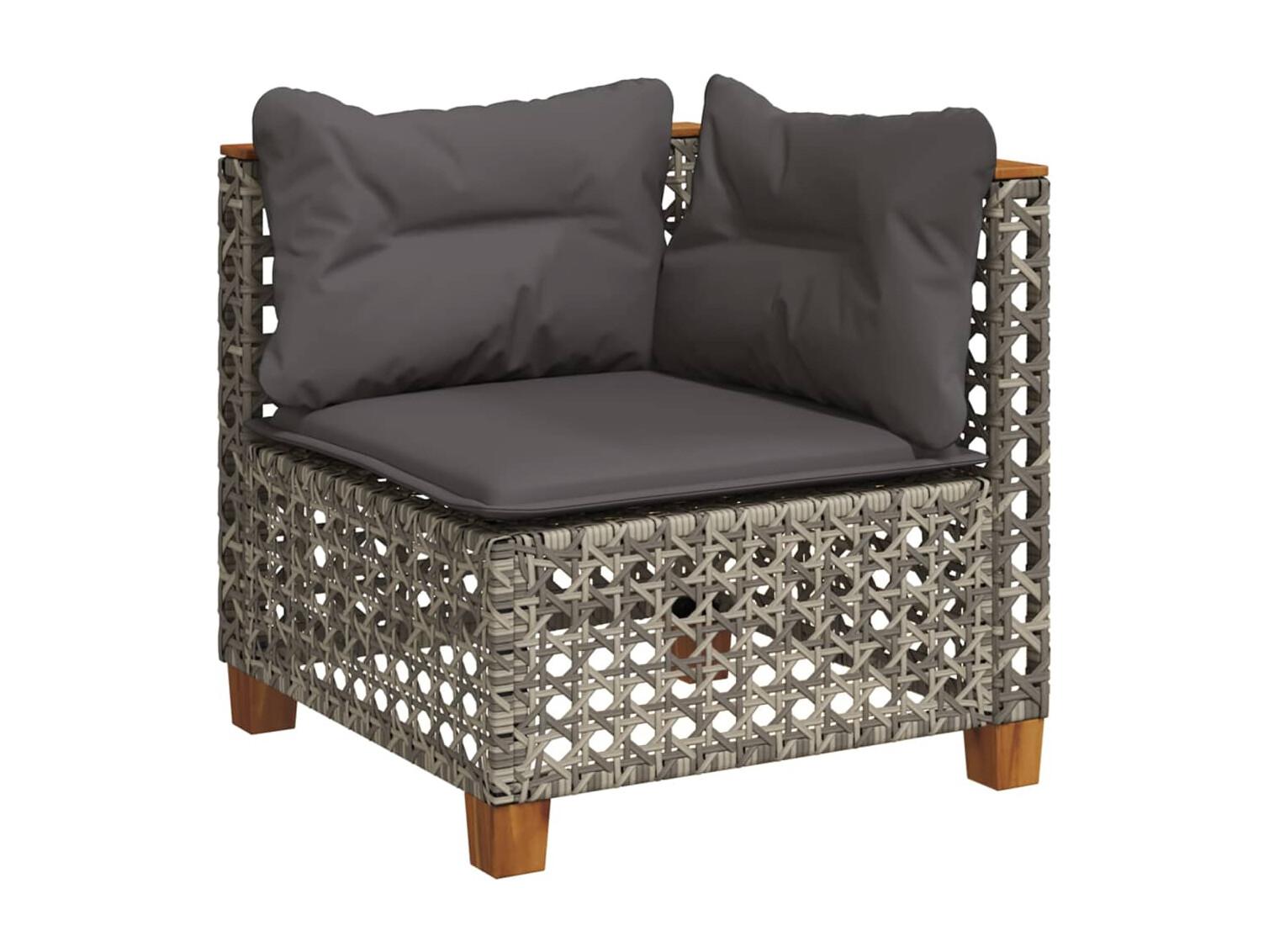 7 peças conjunto sofás p/ jardim c/ almofadões vime PE cinzento