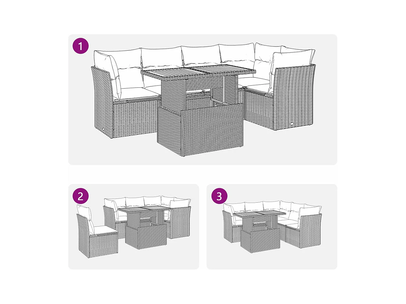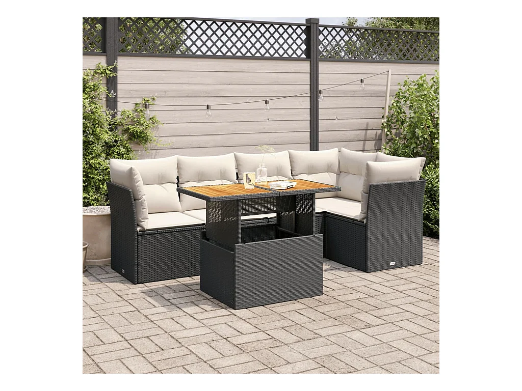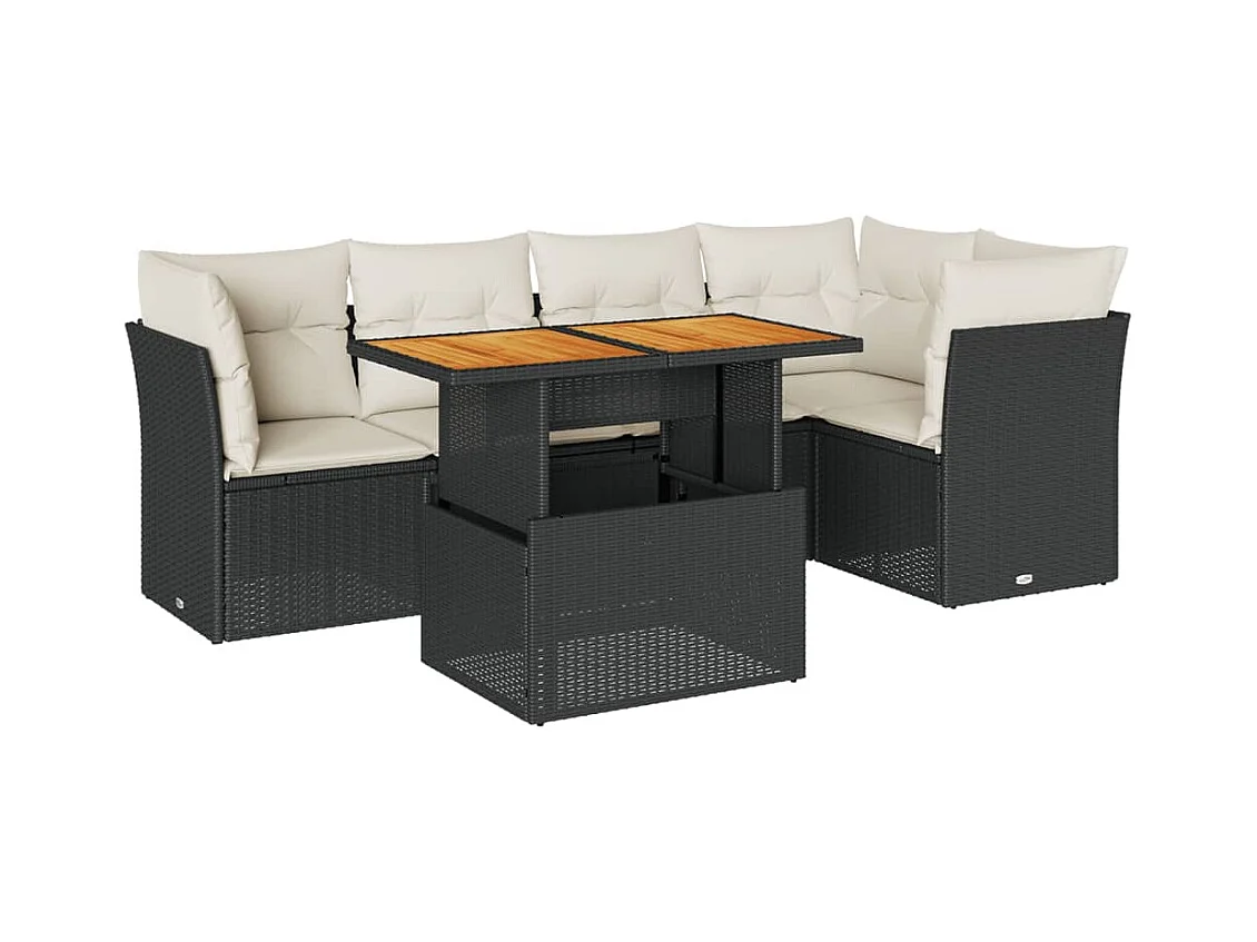 6 peças conjunto sofás jardim com almofadões vime PE/acácia preto