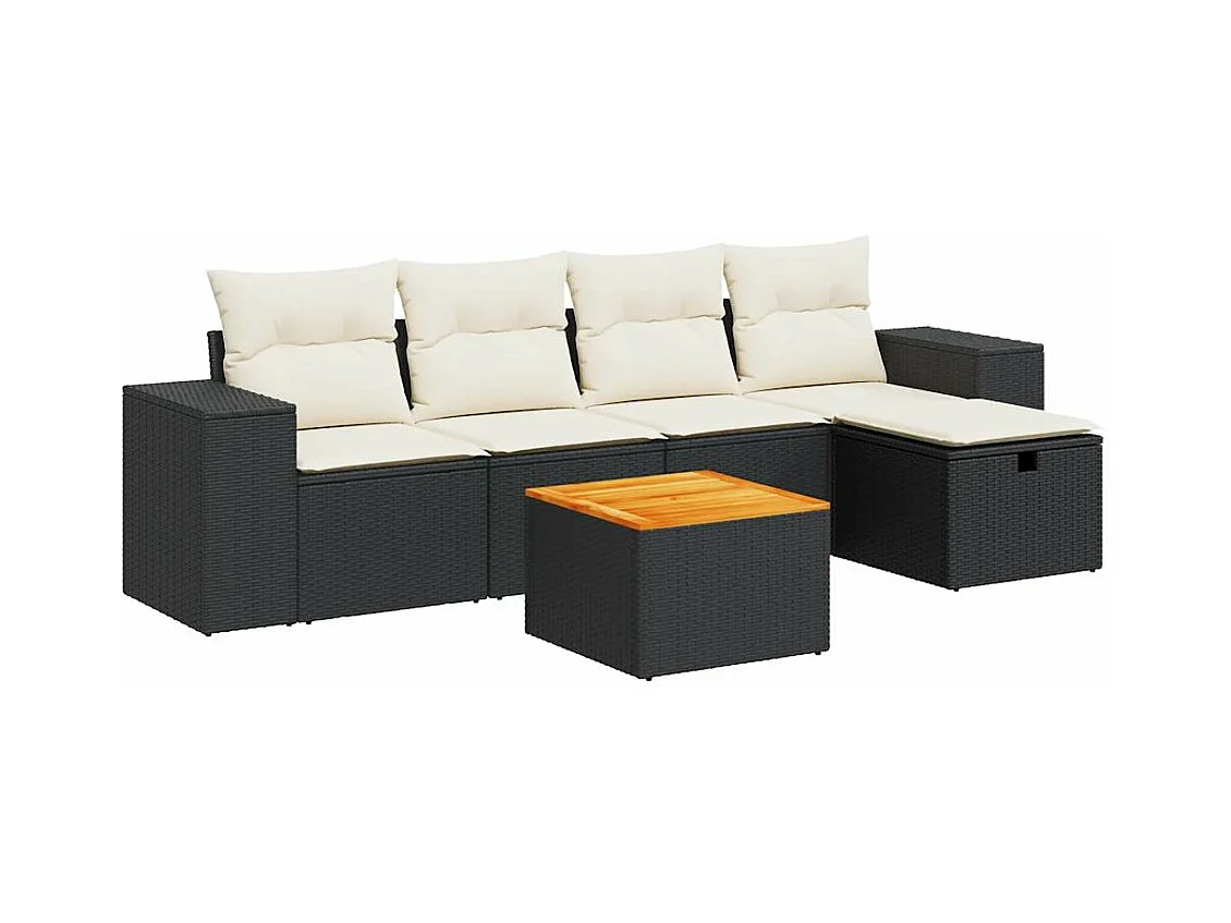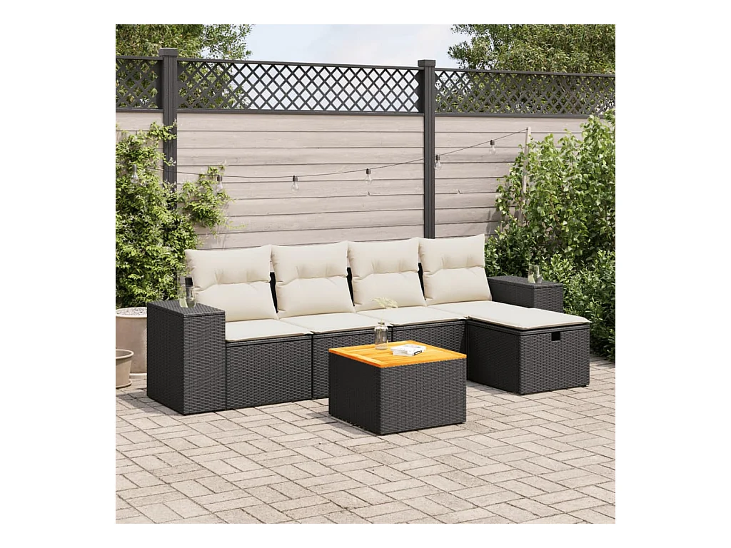 6 peças conjunto sofás jardim com almofadões vime PE/acácia preto