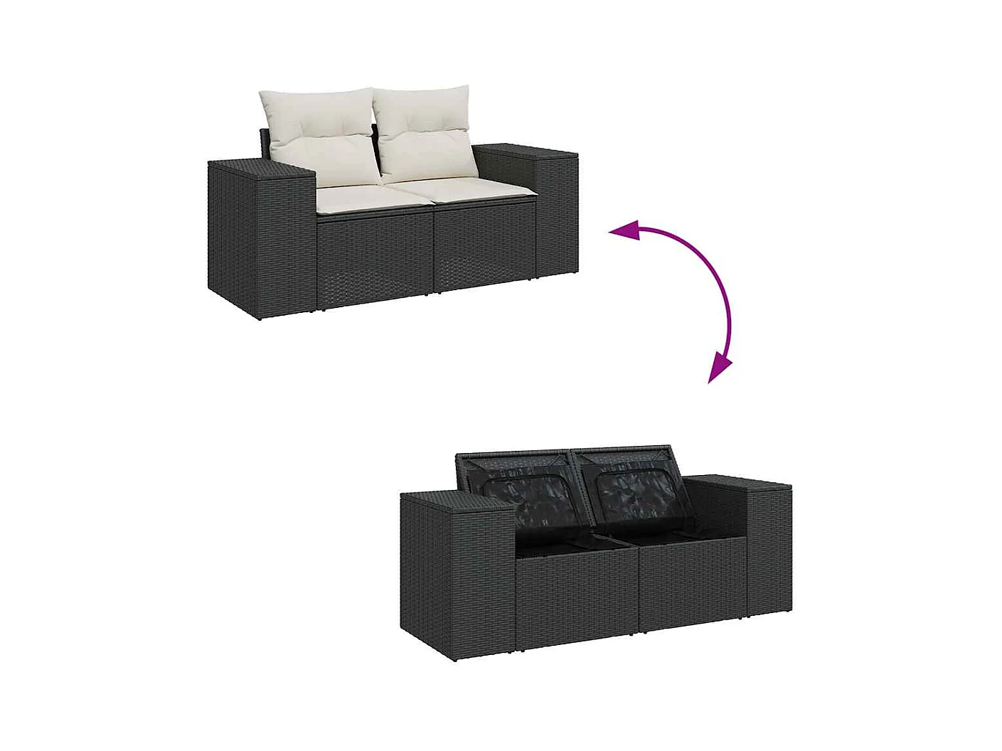 6 peças conjunto sofás de jardim com almofadões vime PE preto