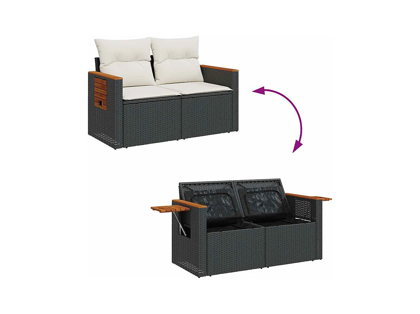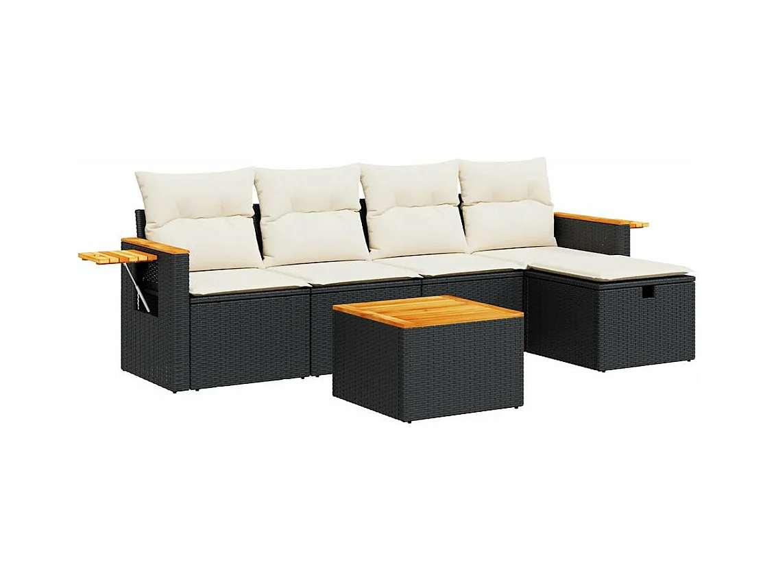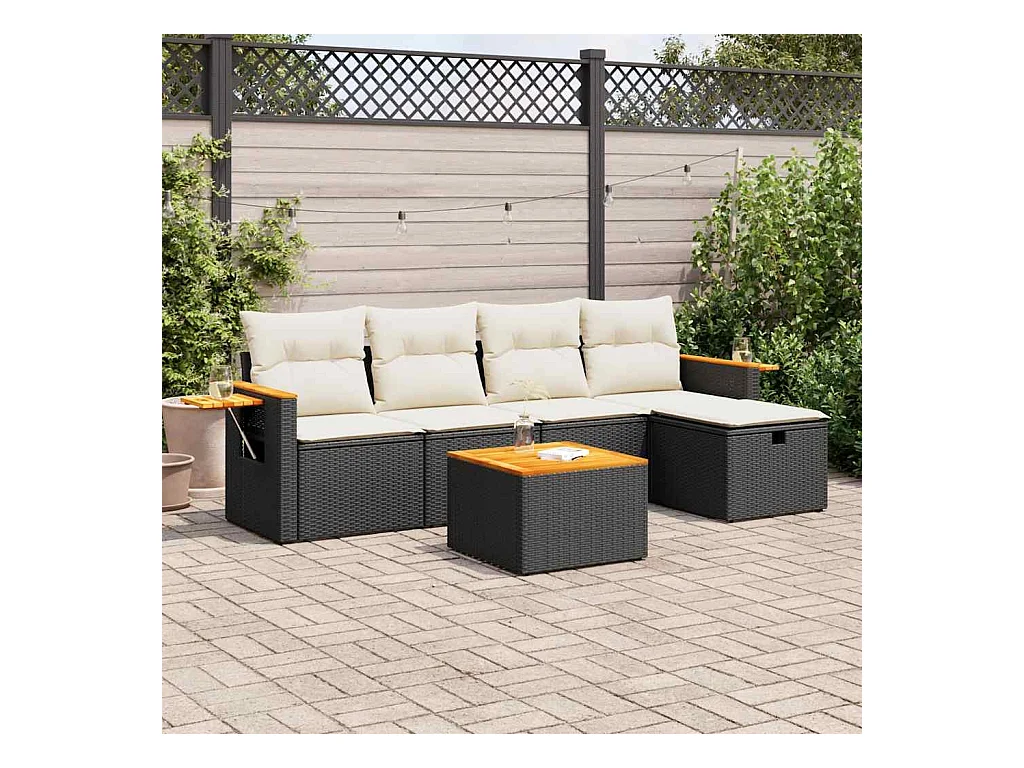 6 peças conjunto sofás jardim com almofadões vime PE/acácia preto