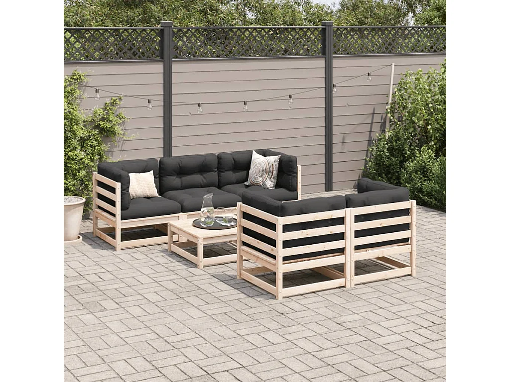 6 peças conjunto sofás de jardim madeira de pinho maciça