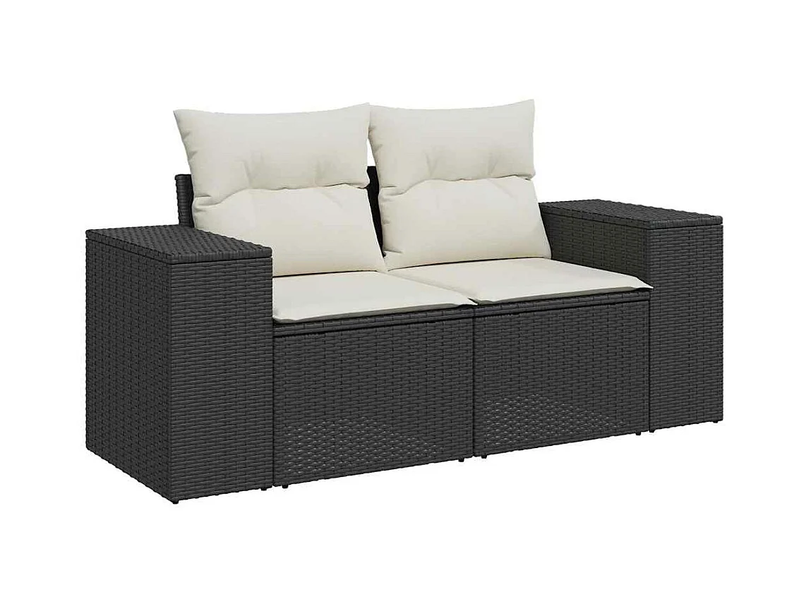 7 peças conjunto sofás jardim com almofadões vime PE/acácia preto