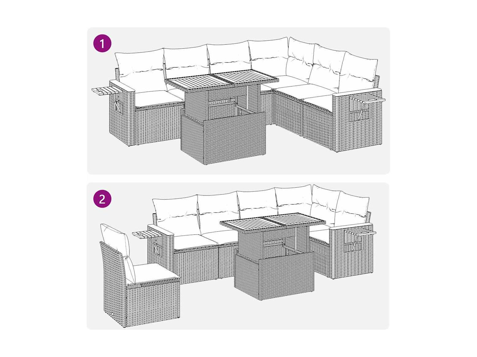 7 peças conjunto sofás jardim com almofadões vime PE/acácia preto