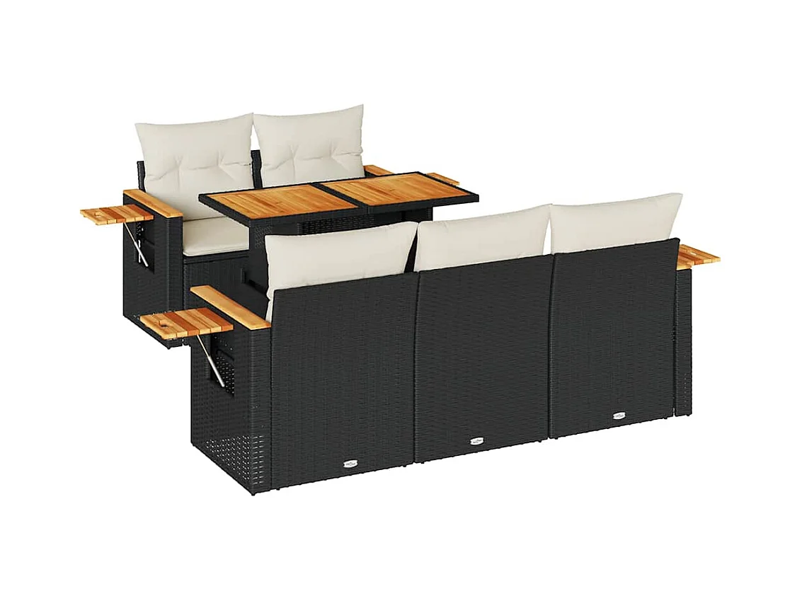 6 peças conjunto sofás jardim com almofadões vime PE/acácia preto