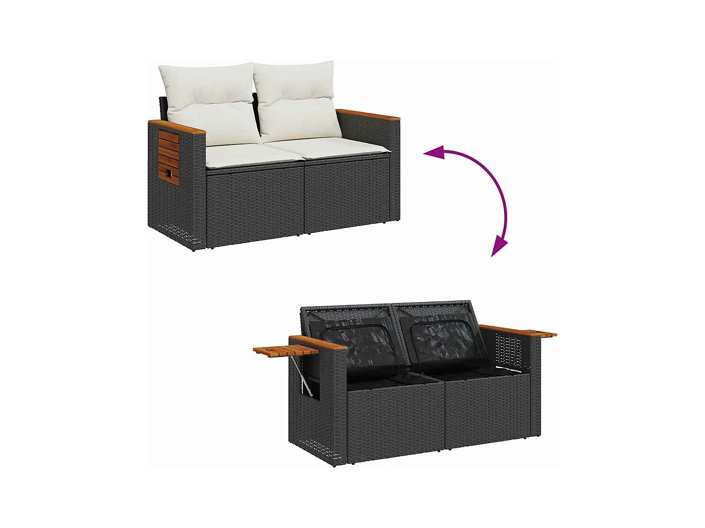 7 peças conjunto sofás jardim com almofadões vime PE/acácia preto