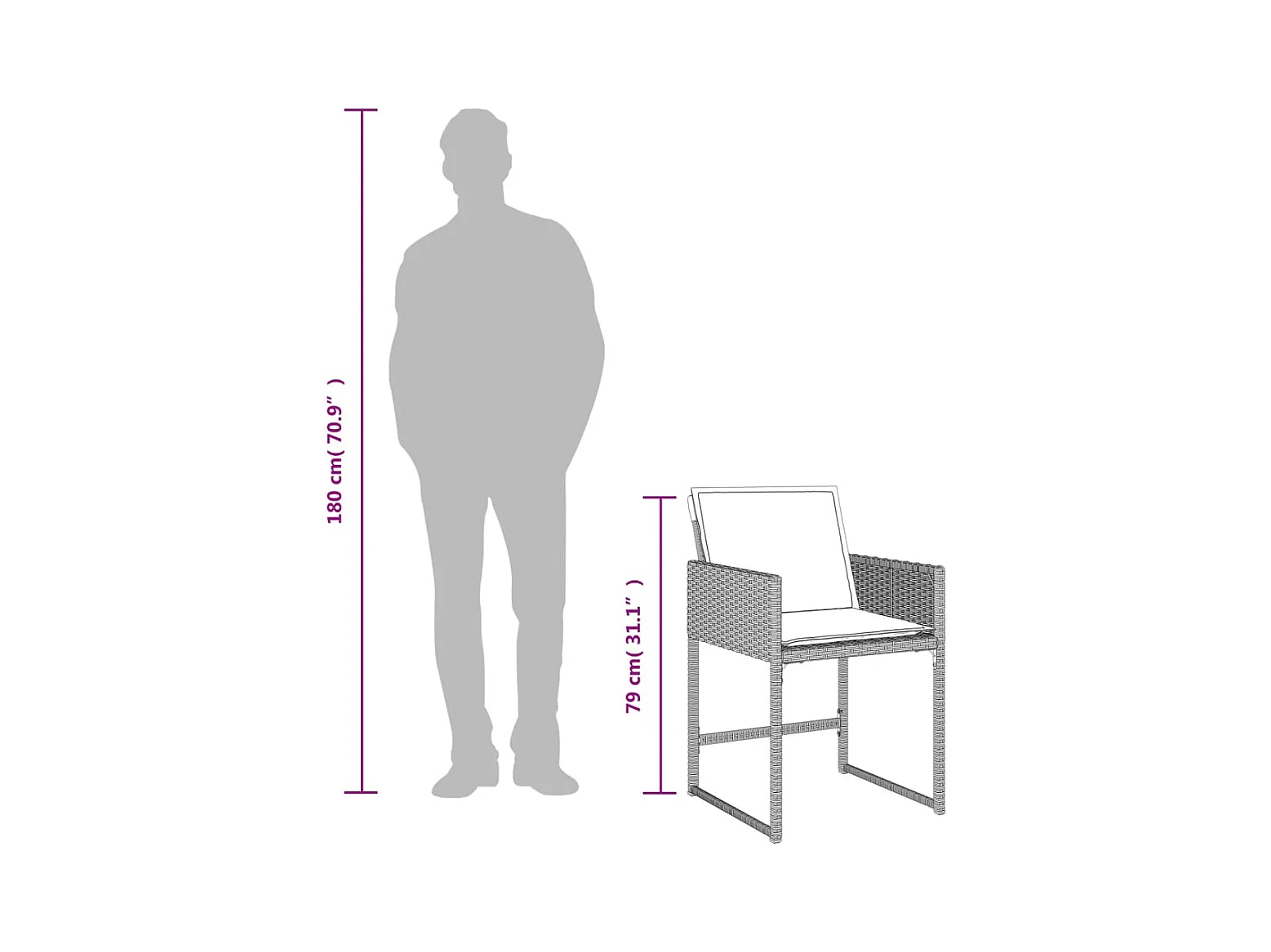 7 pcs conjunto de jantar p/ jardim c/ almofadões vime PE cinza