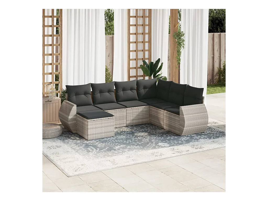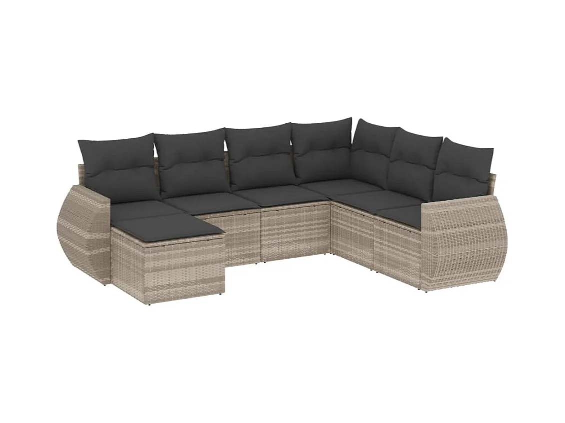 Móveis de jardim com almofadas 7 unidades de resina tecida cinza claro