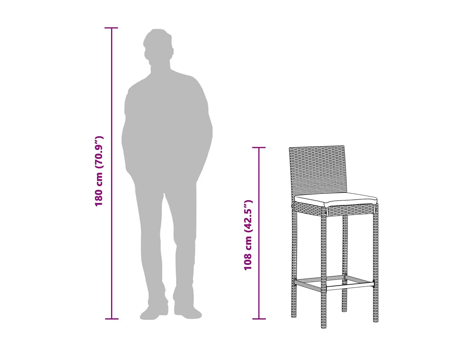 7 pcs conjunto de bar para jardim vime PE/acácia maciça preto