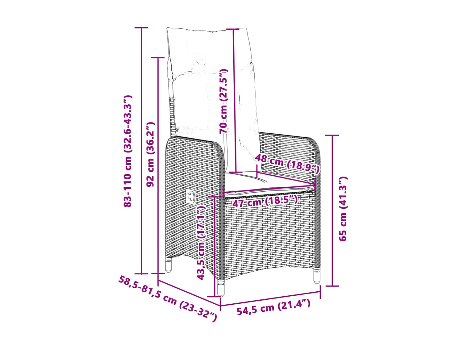 7 pcs conjunto de bistrô para jardim c/ almofadões vime PE bege