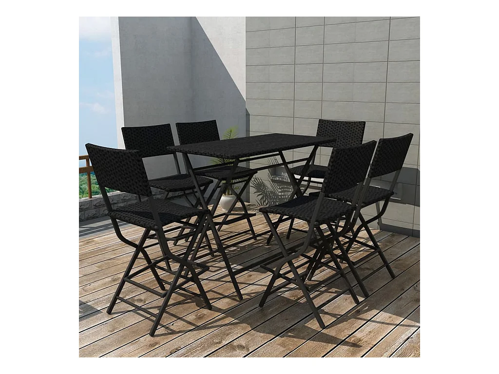 7 pcs conjunto de jantar dobrável jardim aço e vime PE preto PT333978