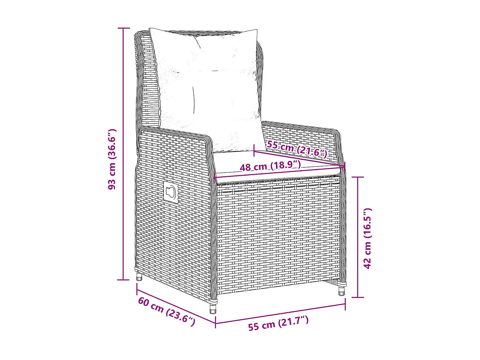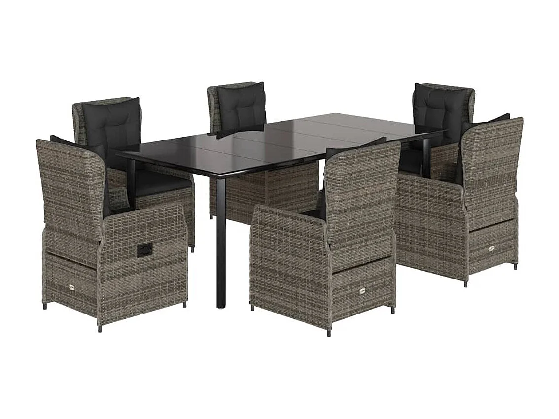 7 pcs conjunto de jantar p/ jardim c/ almofadões vime PE cinza