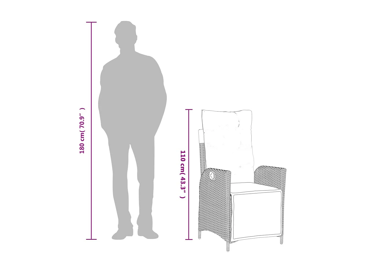 7 pcs conjunto de jantar p/ jardim c/ almofadões vime PE cinza