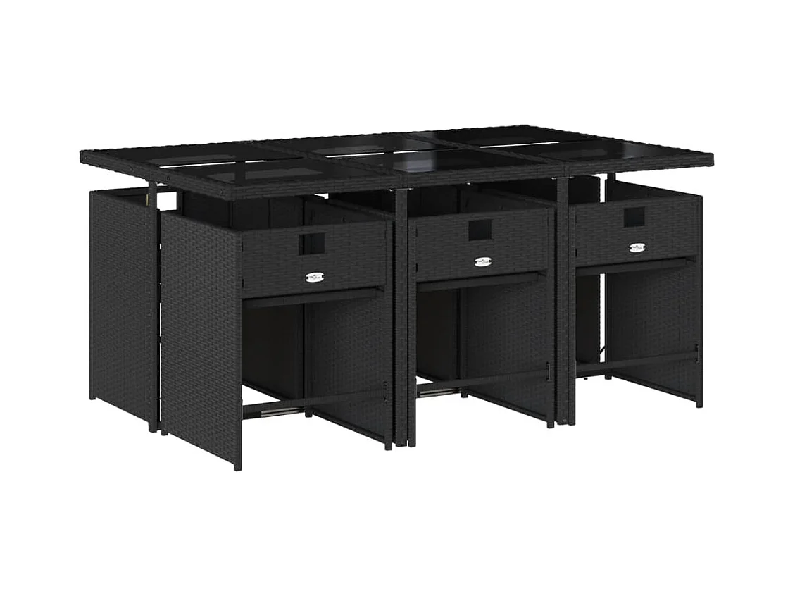 11 pcs conjunto de jantar p/ jardim c/ almofadões vime PE preto