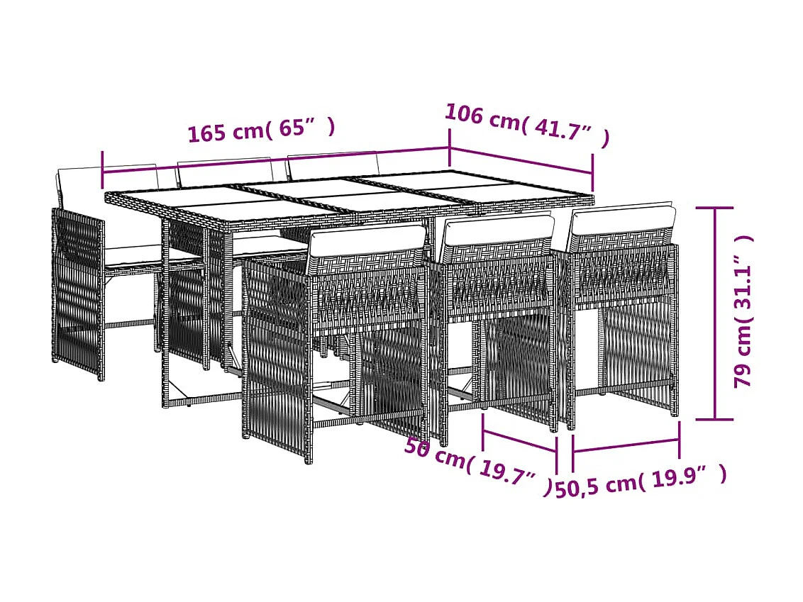7 pcs conjunto de jantar p/ jardim c/ almofadões vime PE preto