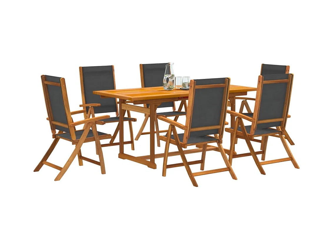 7 pcs conjunto de jantar para jardim acácia maciça e textilene