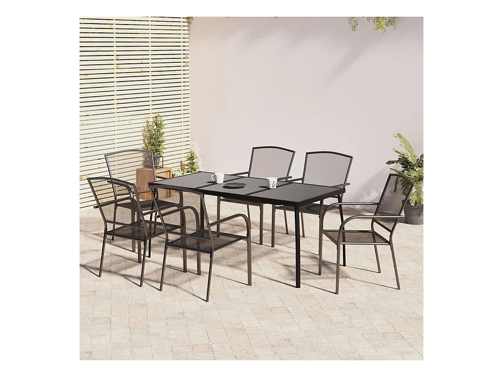 7 pcs conjunto de jantar para jardim aço antracite