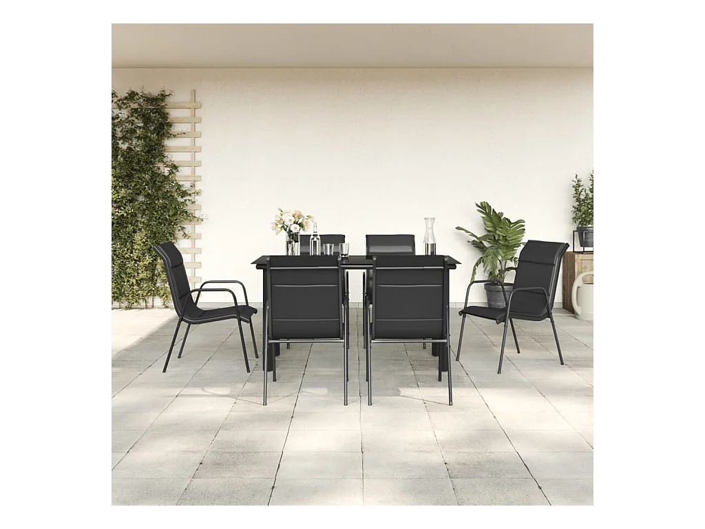 7 pcs conjunto de jantar para jardim aço e textilene preto PT932194