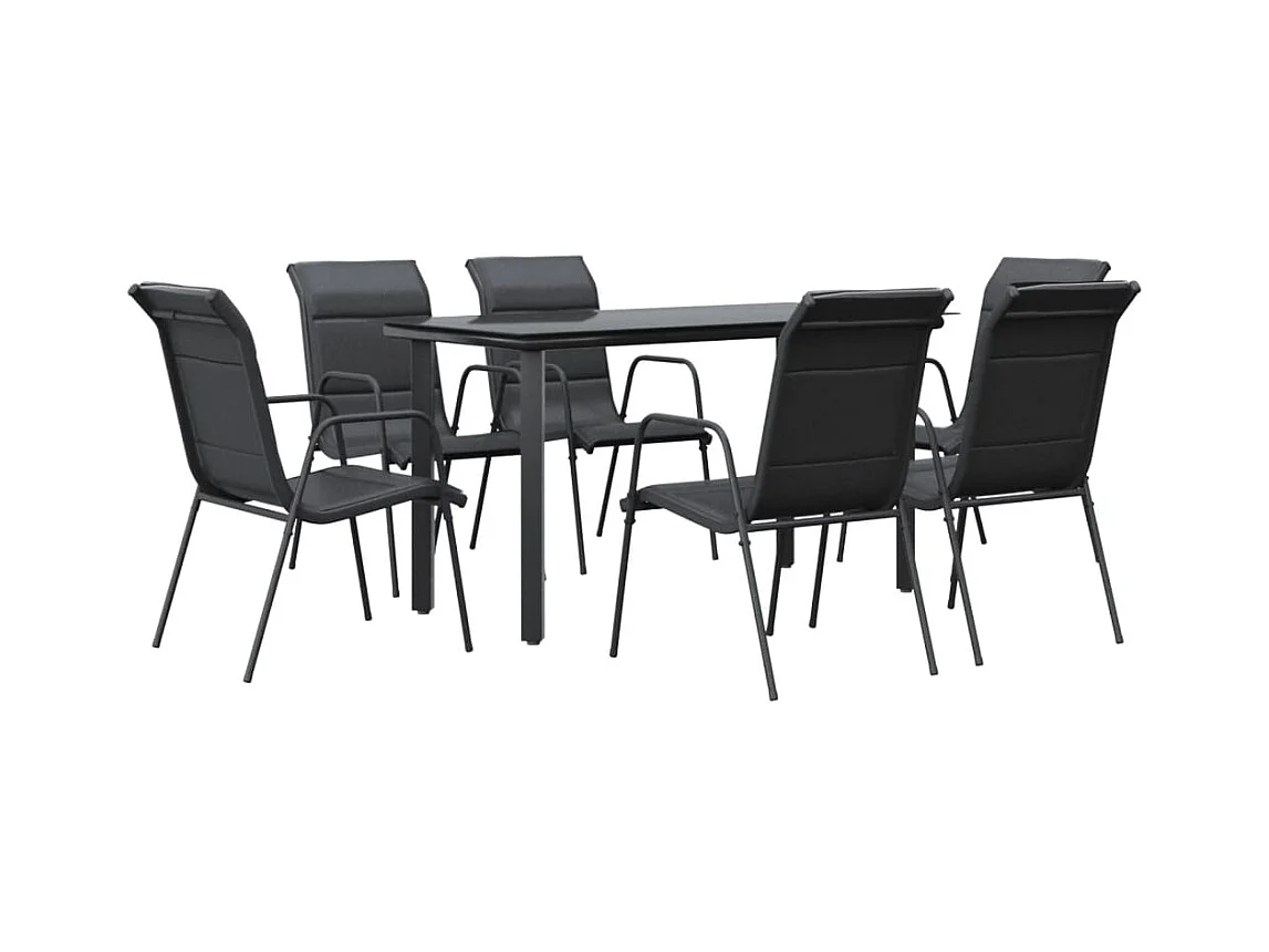 7 pcs conjunto de jantar para jardim aço e textilene preto PT471856